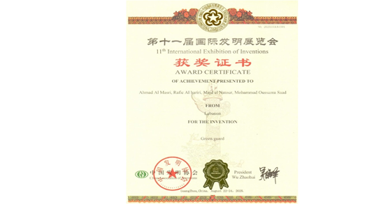 لبنان يحصد الميدالية الذهبية في الصين بفضل ابتكار "Green Guard"