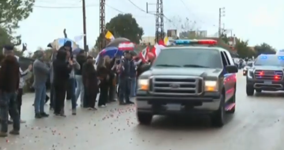 (*)موكب البابا يسلك أوتوستراد جبيل – عنايا والمؤمنون يستقبلونه بالأعلام والأرز والزهور أمام كنيسة مار جرجس