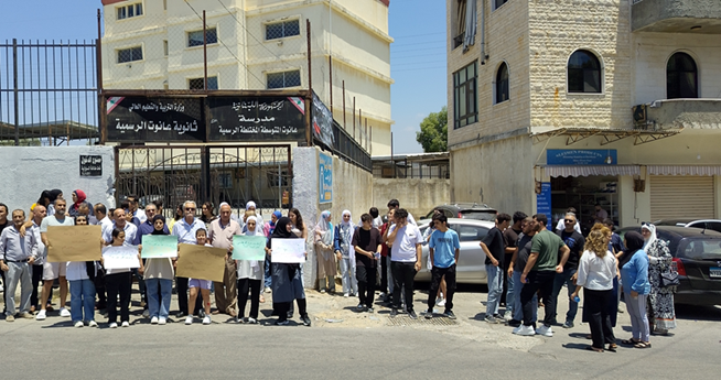 اعتصام للجنة الاهل في ثانوية عانوت تنديدا بقرار إقفال الفرع الانكليزي فيها