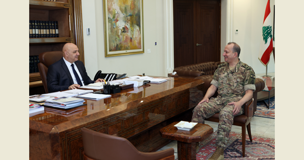 رئيس الجمهورية وهيكل زارا ثكنة بنوا بركات وبحثا مع قائد قطاع جنوب الليطاني الاعتداءات الإسرائيلية ومهمات الجيش جنوبًا