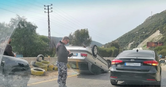 انقلاب سيارة على أوتوستراد شكا باتجاه البترون تسبب بزحمة سير