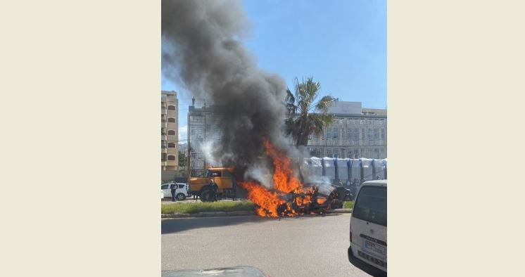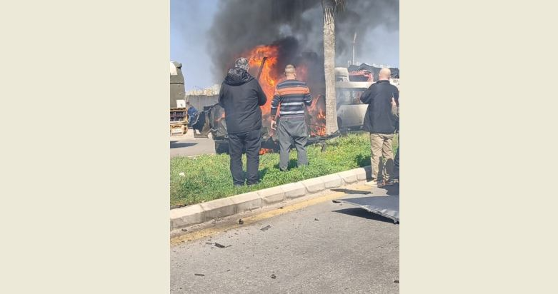 انتشال جثمان شهيد من السيارة التي استهدفتها الغارة في صيدا