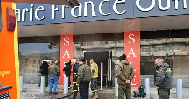 اخماد حريق داخل محل على طريق عام الفرزل